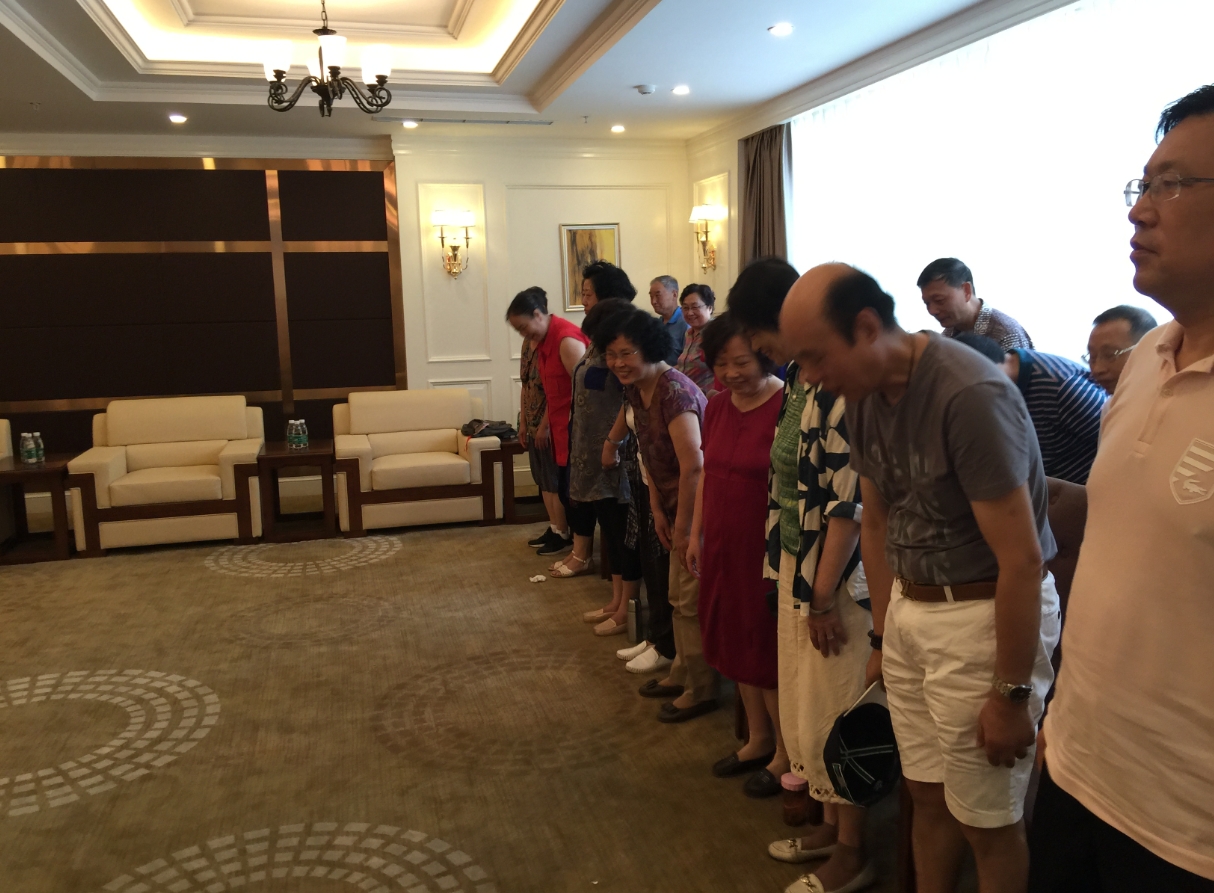 上午的见面会结束后,员工们与甘老先生、郭主任、彭书记及李老师、黄老师共进午餐。午餐期间,员工们与老师们在愉快的气氛中亲切交谈,并向老师们敬酒,表示对老师们的美好祝福。