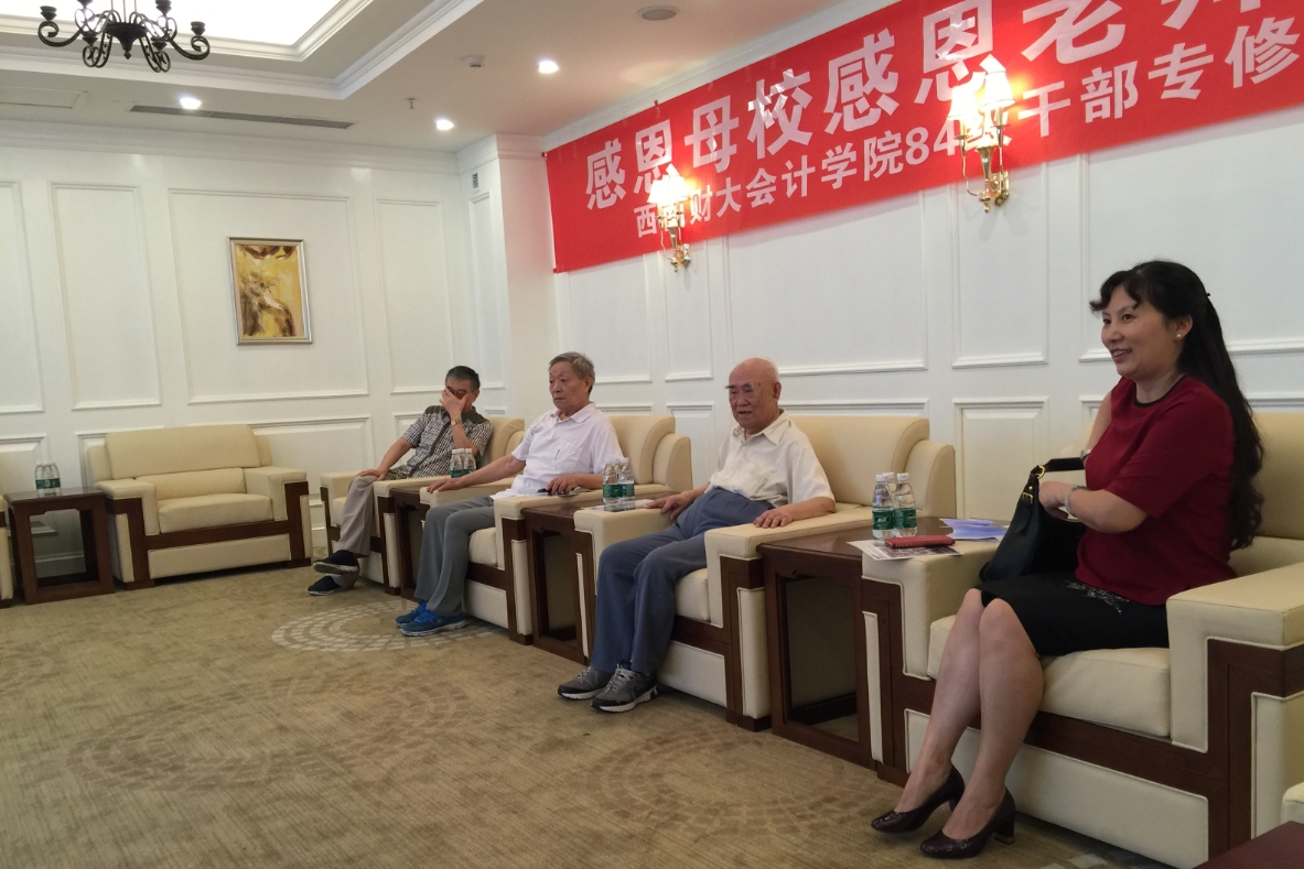 7月23日,来自五湖四海的四十多名84级会计干部专修班员工齐聚光华,开始了为期一天的返校活动。qm球盟会网站分党委副书记方萍老师,原qm球盟会网站副系主任郭徐咸老师,原会计公司党总支书记彭严征老师,原公司党委书记甘本佑老先生和84级任课教师李老师、黄老师受邀参加了活动。
