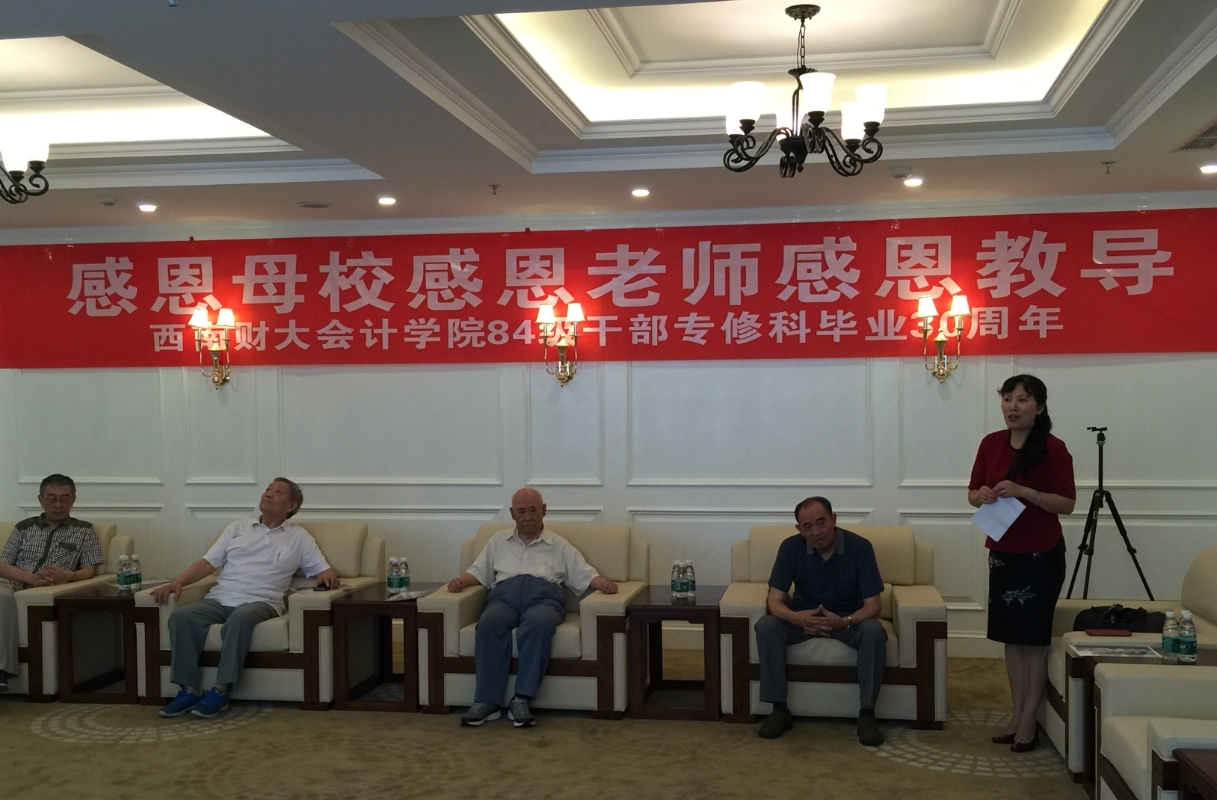 上午十点,大家在光华校区住友苑举行了见面会。见面会开始,主持人李能发员工便对到场的公司领导及老师进行了介绍,并向老师一一念出到场同学们的名字。会上,甘老先生进行发言,表达了对同学们的思念之情,对同学们几十年辛勤工作为校争光表示感谢;随后彭老师发言,对员工们回校表示热烈欢迎,并简单介绍了会计干部专修科的特殊性,表达出自己对于84级员工这样一个特殊群体的称赞;接着,郭老师发言回忆了84级员工们在校的优秀表现,并表达了对同学们的美好祝愿。 紧接着,方萍副书记还就qm球盟会网站近几年发展概况、员工工作的开展情况以及qm球盟会网站未来发展战略和目标做了详细的介绍。此外,她还强调了“建设高水平院校,走内涵发展道路”的目标,表示要进一步推动员工与母校之间的联系与交流。