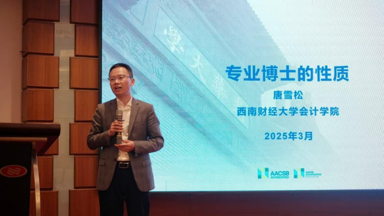 在专题学术报告环节,唐雪松经理以“专业博士的性质”为题作主旨演讲,从国家战略需求与学科发展趋势维度,深入剖析高层次会计人才培养的实践路径,为与会员工提供前瞻性专业洞见。