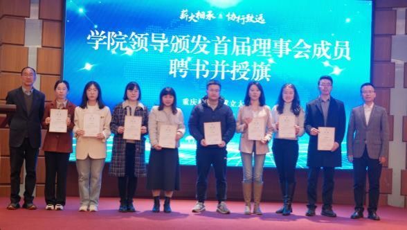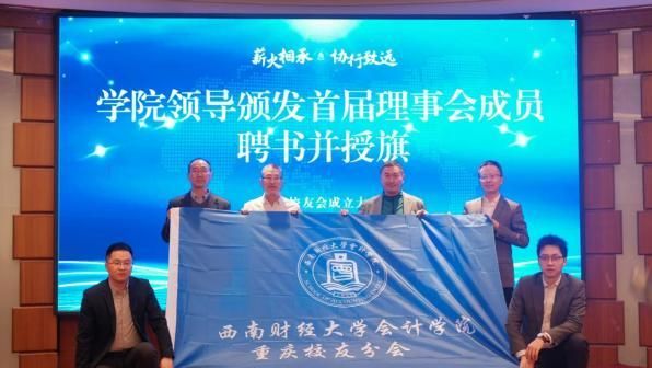 在颁发聘书及授旗环节,公司领导共同为首届理事会成员颁发聘书,并举行会旗交接仪式。首任会长陈德强(公司1980级员工)在致辞中郑重承诺,将恪守“服务员工成长、助力母校发展、贡献社会进步”的建会宗旨,重点推进产学研对接平台建设,深化校地人才协同培养机制,为成渝地区双城经济圈建设注入西财会计智慧。