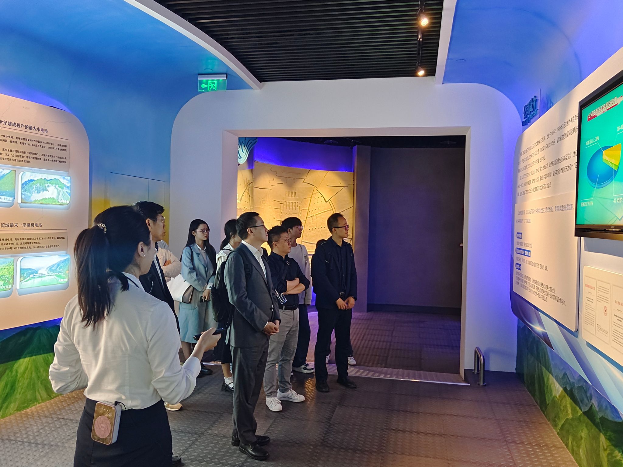 在新能源管理局计划财务部副主任、会计93级员工邱展法等领导的陪同下,公司师生一行首先参观了雅砻江水电站企业数字展厅,在了解公司当前情况及产业发展的同时,也深感其全力开展好国家重大科技基础设施项目建设运行、为大型复杂科学研究提供必要支撑的决心和使命担当。