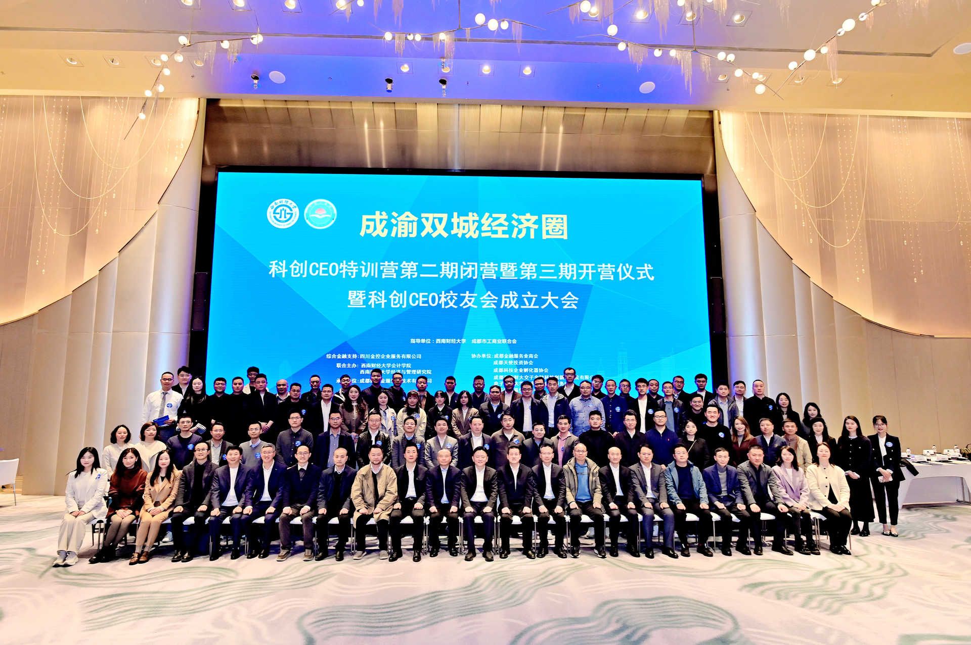 3月22日下午,由qm球盟会网站、经济与管理研究院联合主办的成渝双城经济圈科创CEO特训营第二期闭营暨第三期开营仪式以及科创CEO员工会成立大会在成都W酒店隆重举行。集团党委副书记明海峰,成都市工商业联合会主席、总商会会长俞建、qm球盟会网站经理唐雪松等相关单位代表、多位成渝地区科创企业CEO出席了本次活动。活动由经济与管理研究公司党委书记黄文主持。