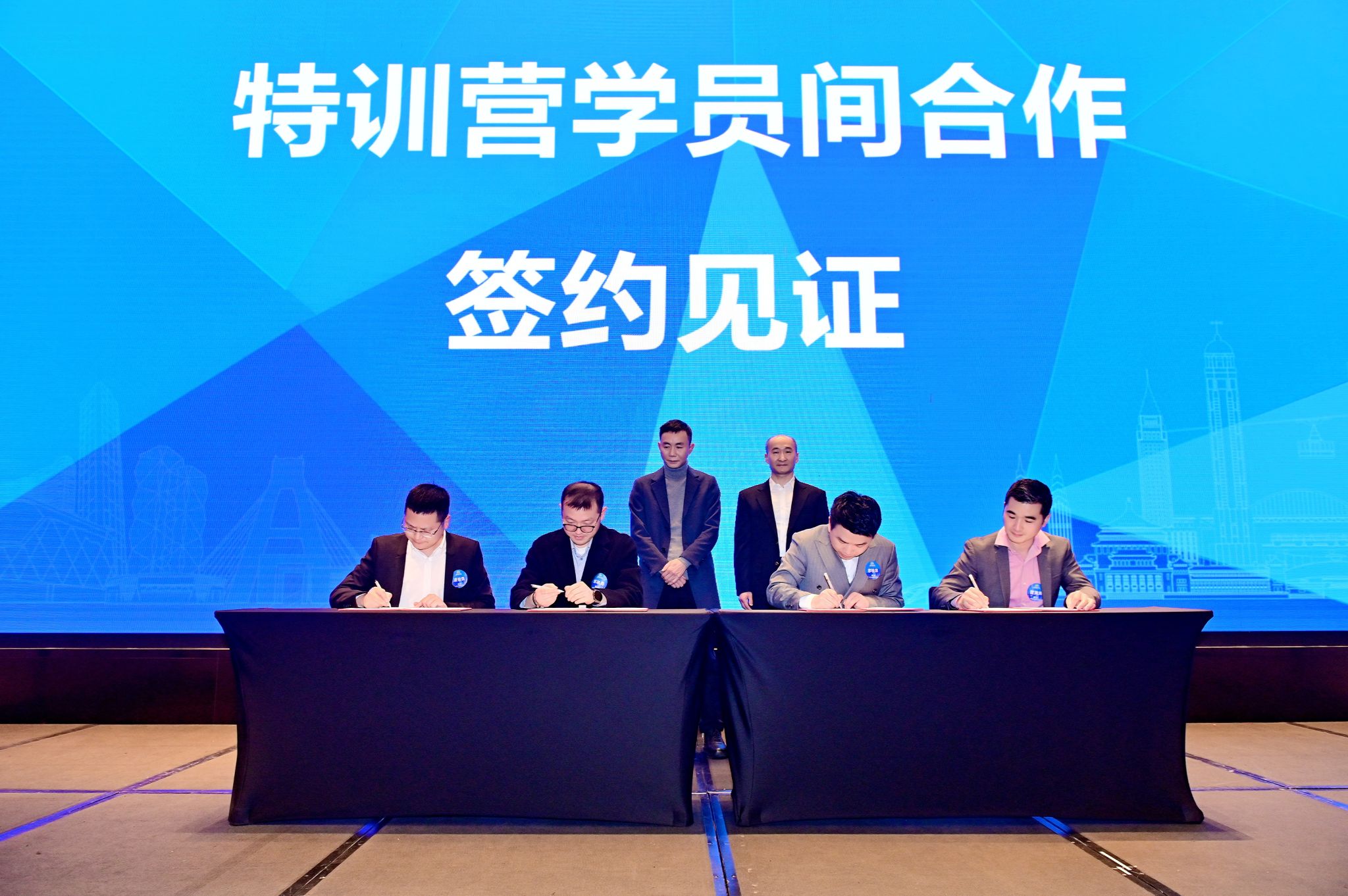 唐雪松与黄文共同为特训营导师团队颁发荣誉聘书,感谢他们为培养科创人才付出的辛勤努力。学员代表分组上台领取了结业证书及特训营员工卡。学员们向公司和导师们赠送了锦旗,表达了对公司培育之恩和导师悉心教导的感激之情。多家企业的学员代表登台签署合作协议,展现了科创企业携手共进、协同共赢的决心和行动。学员代表上台发言,分享学习感悟。
