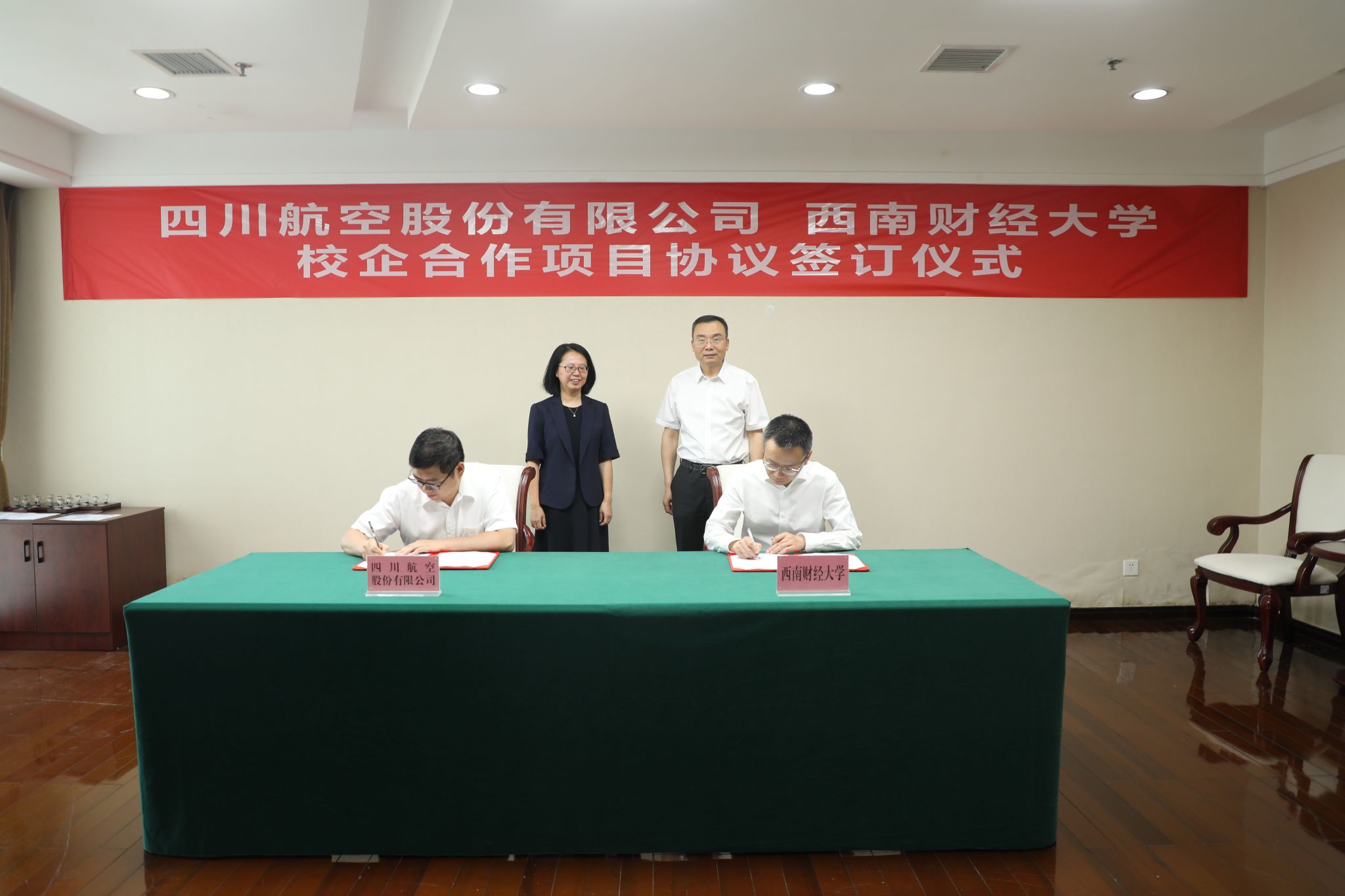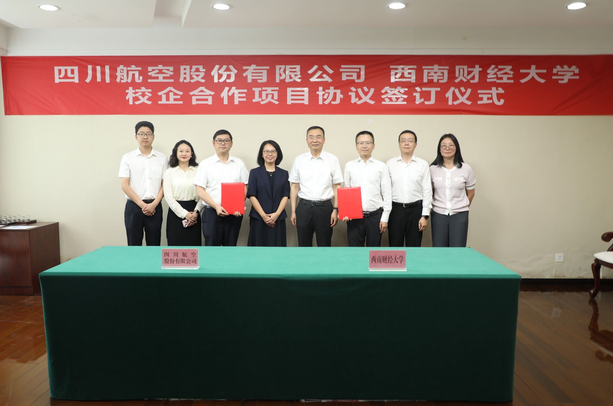 6月11日,公司与四川航空股份有限公司校企合作项目协议签订仪式在柳林校区举行。四川航空股份有限公司财务总监余晓、战略转型办公室总经理张力,公司党委常委、副董事长马永强出席仪式。