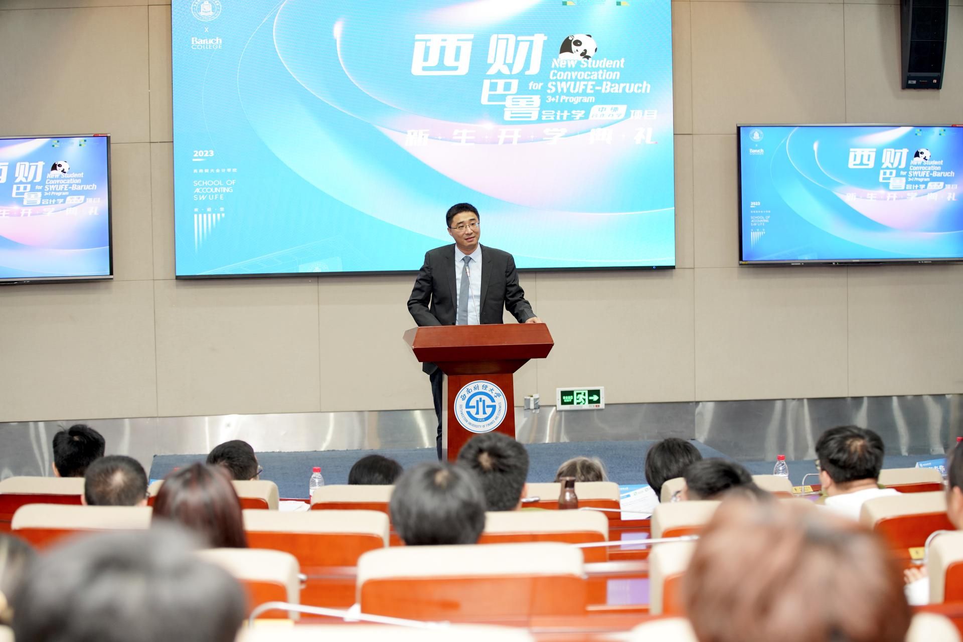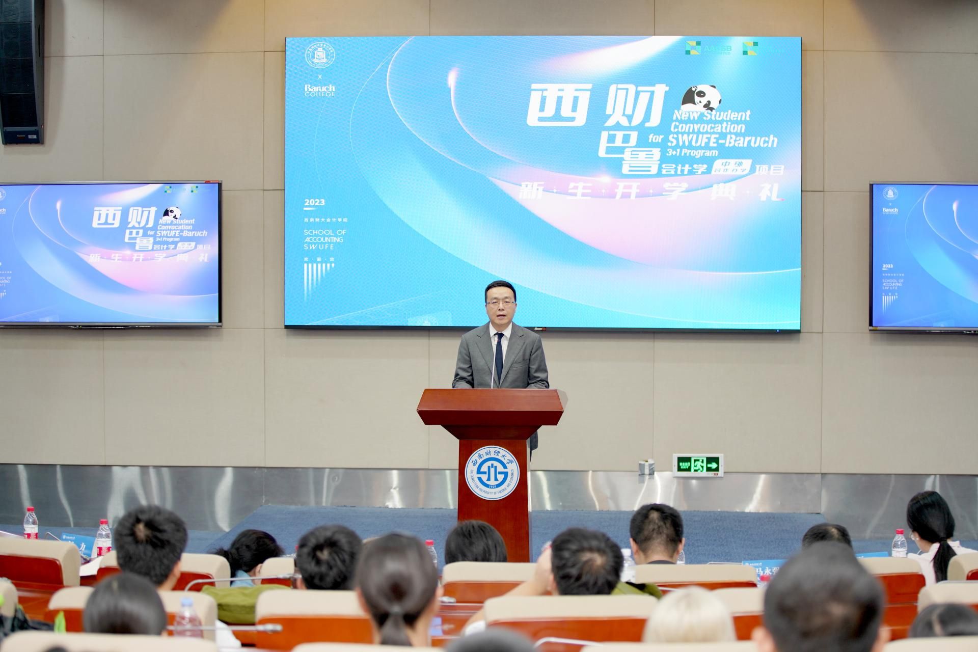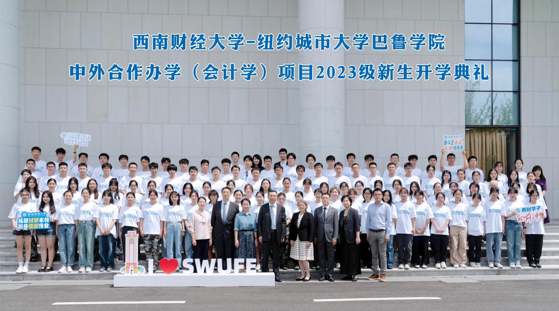 会后,纽约城市大学巴鲁公司代表团一行出席西财-巴鲁会计学(中外合作办学)项目2023级新生开学典礼,员工工作部部长梁婷、国际交流与合作处处长王新、教务处副处长廖春华莅临指导,qm球盟会网站经理马永强、副经理易阳、项目管理团队老师及2023及项目全体新生参加了开学典礼。