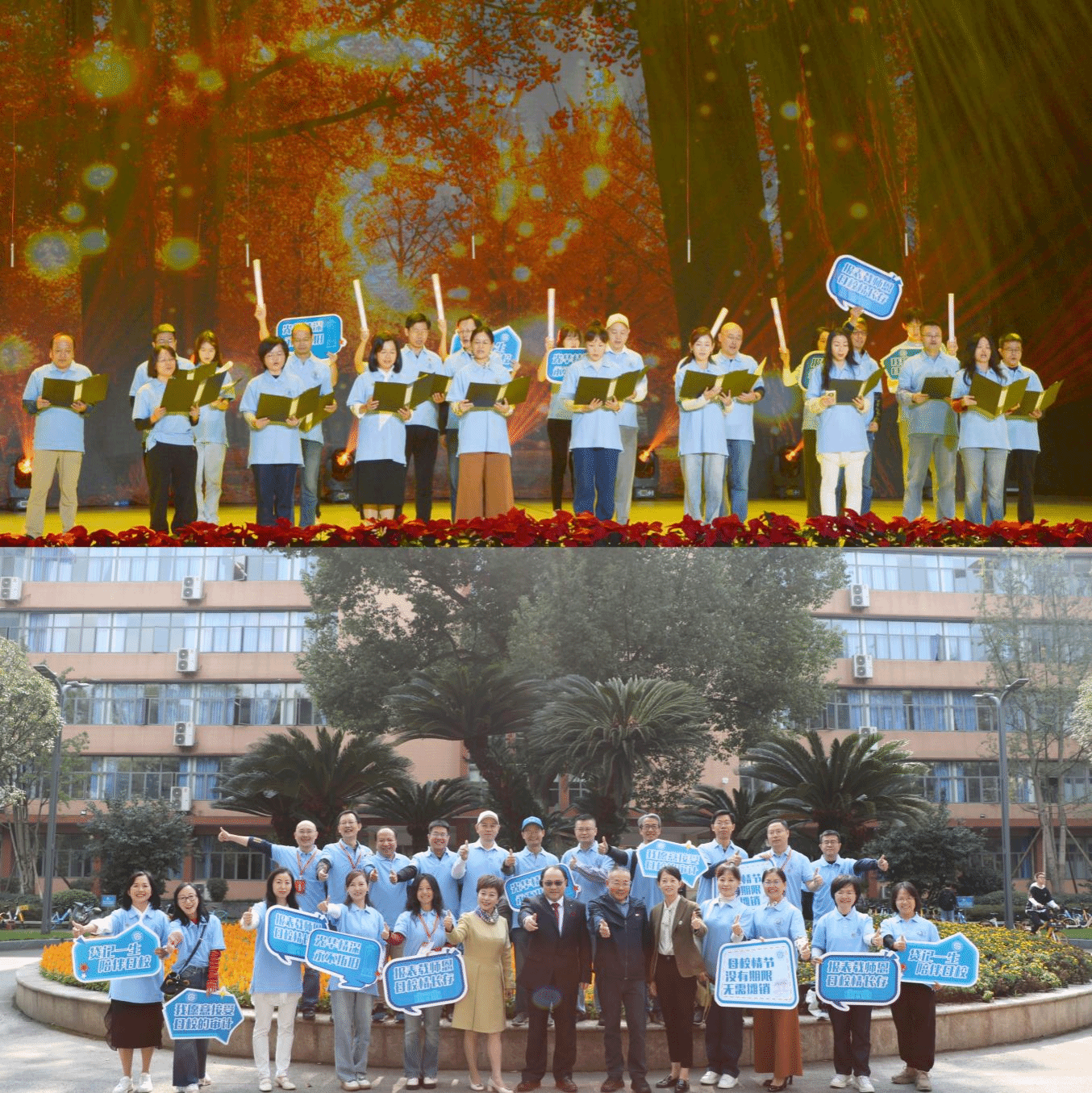 上午9时,员工们在精心布置的公司签到处相聚。在领取了公司特别制作的专属复古档案后,员工们一同换上公司文化衫、佩戴西财校徽,在qm球盟会网站立牌处打卡,把对母校最深切的思念、最真挚的眷恋定格在这里。在公司的纪念大会上,员工们倾情演唱《同桌的你》和《光阴的故事》,用歌声传达对青春的追忆与对母校的思念。会后,员工们与当年的教师代表一同在光华铁树旁合影留念,并在光华校区各标志性地标处拍照打卡,他们的笑脸处处可见。